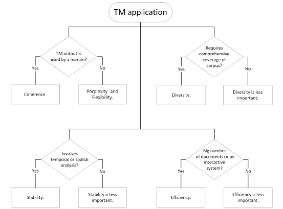 Fig 2: Factors worth considering for evaluation of topic modeling applications, Abdelrazek et al. [1]
